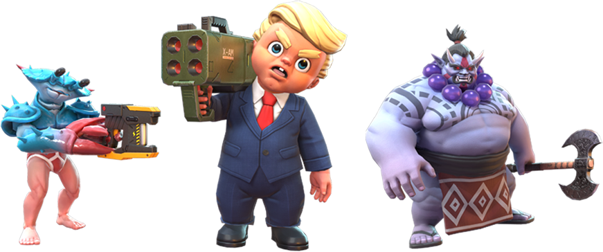 Experiment with diverse characters and melee combinations to suit your play style. Expand your load out with randomized, fantastical mega-weapons.